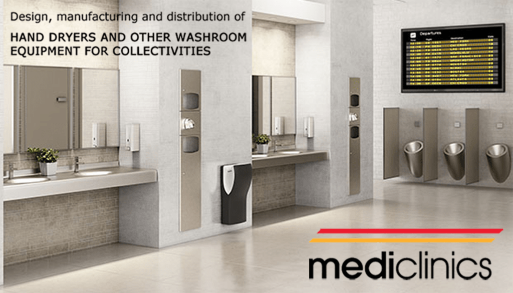 MEDICLINICS S.A. is a company born in Barcelona, of fully Spanish capital, which has established itself within the market as one of the leading companies in the design, manufacturing and marketing of hand dryers and bathroom accessories for collectivities.